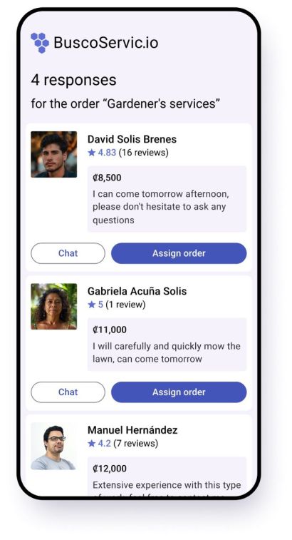 Choose a professional based on price and ratings