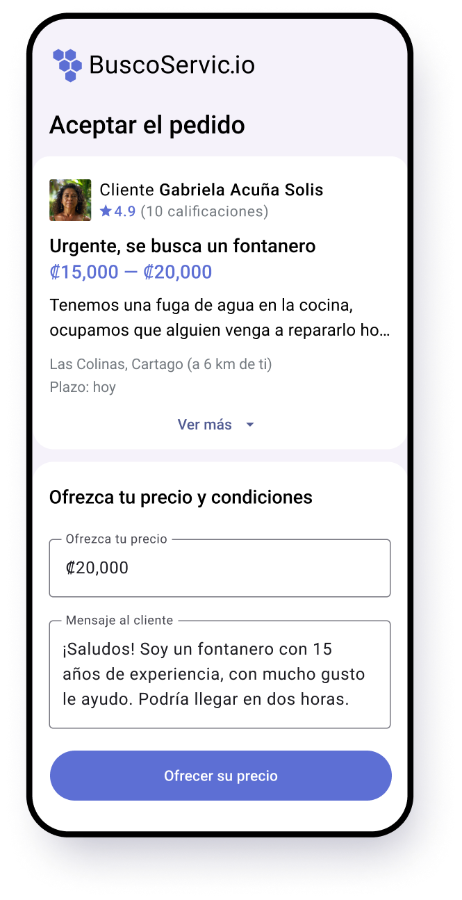 Pónganse de acuerdo con el cliente acerca de las condiciones del trato y reciba el pago en efectivo o por SINPE